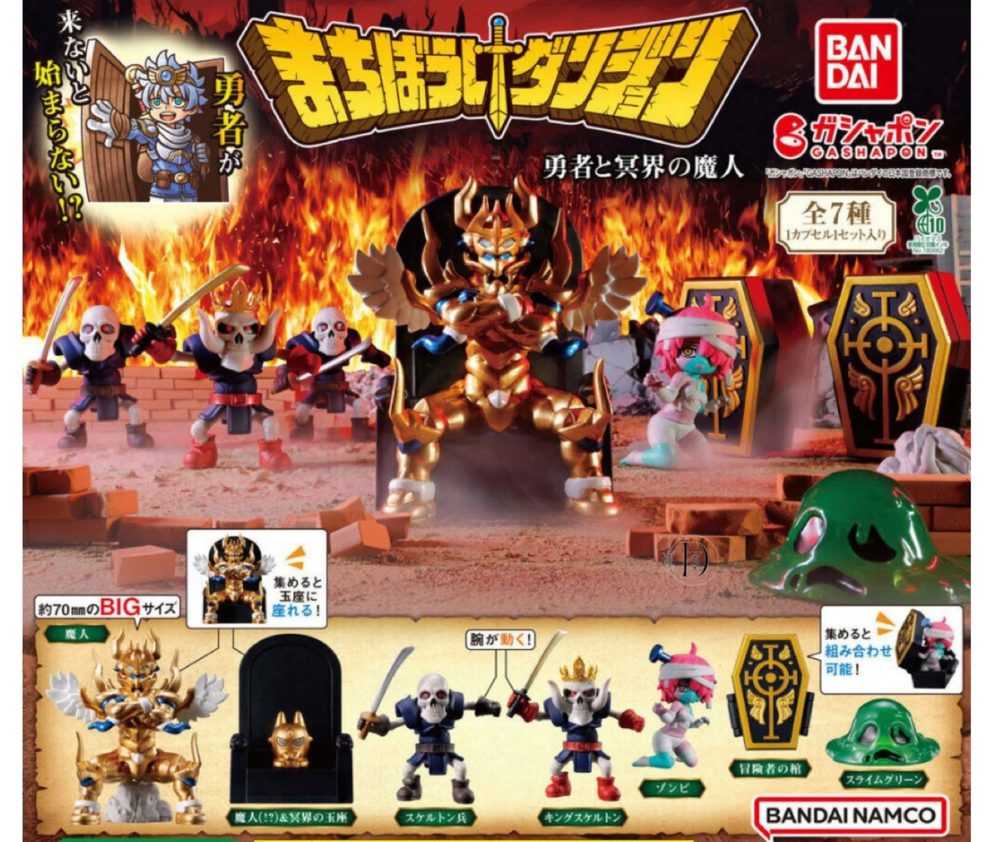 「まちぼうけダンジョン 勇者と冥界の魔人」第4弾は、シリーズ最大級とも言える重厚な魔人キャラクターをはじめ、ゾンビの首やスケルトン兵の両腕、棺の扉などが可動するギミックを搭載。300円でありながらも遊びごたえのある造形とストーリー設定で、勇者が現れない世界で待ち続けるキャラクターたちの“間(ま)”とドラマを手元で味わえる、深みのあるガシャポンフィギュアシリーズです。